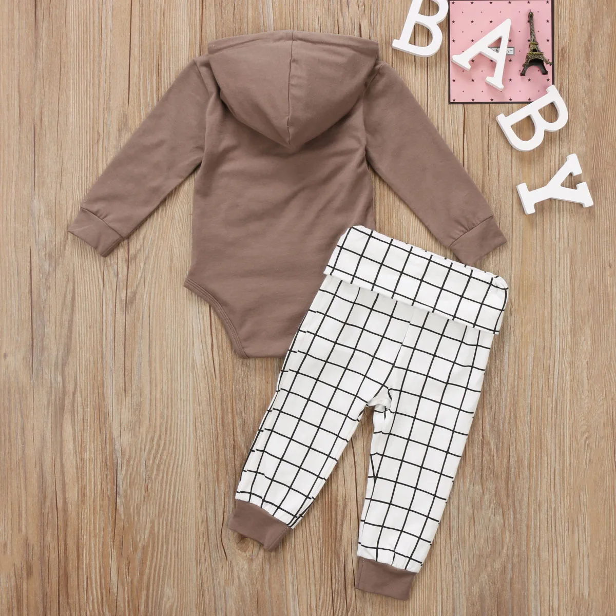 Cheap Chance of 2 pieces Solid Long sleeve Hoodie Top and Stripe Pant Set For Baby Boy Clothes