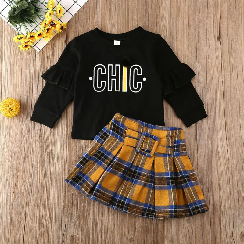 Best Chance of Toddler Girl Clothes Set Hoodies Tops Plaid Skirt Baby Girl Hoodies Skirt 2PCS Outfit Children Clot